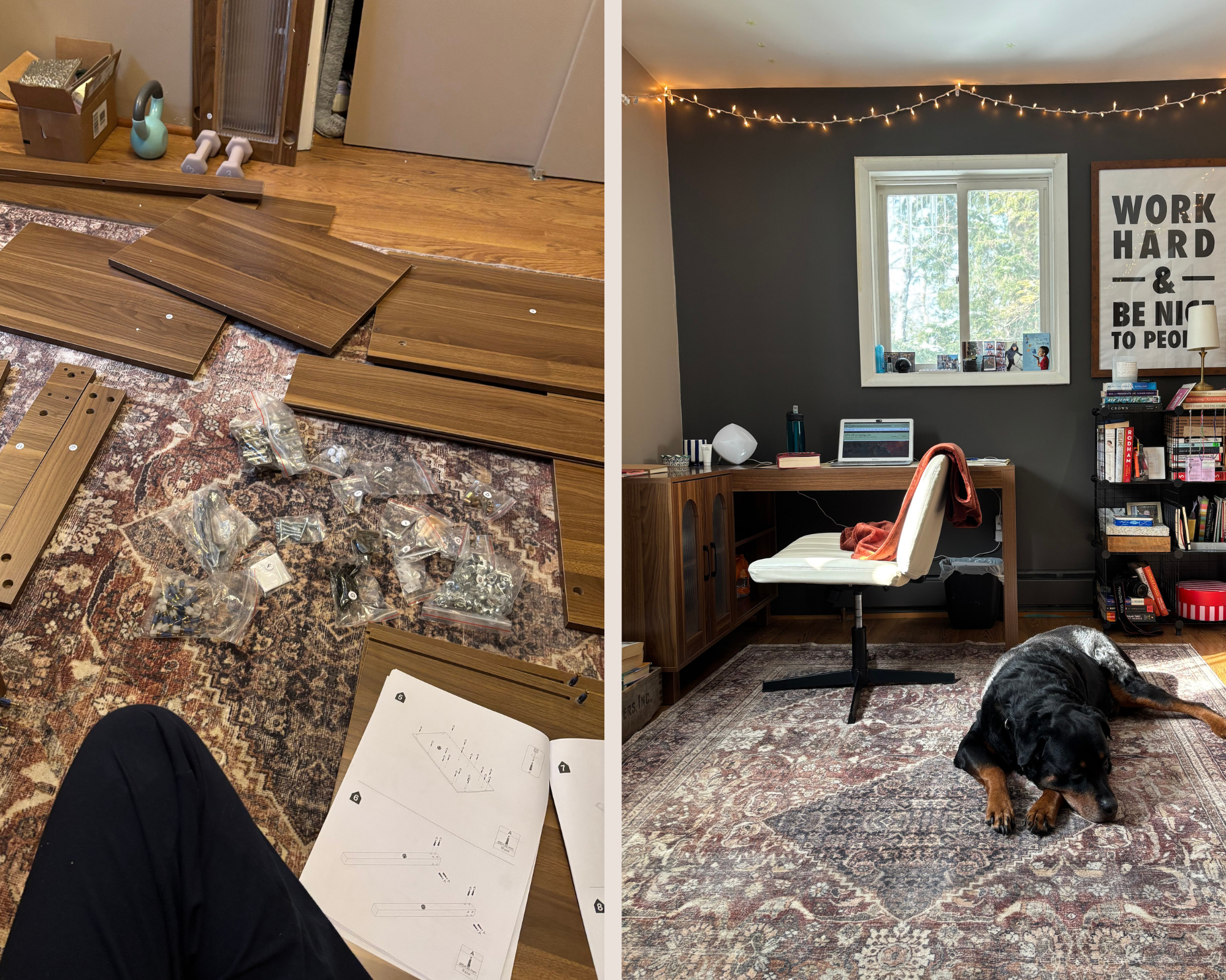 Related: My new job is fully remote so I’m moving more fully into my home office. I have worked a hybrid schedule for a few years so I did have a small table in here that I used for a desk, but now that it’s more of a permanent thing, I decided I’d like to have more space. I put that new desk together by myself on a Monday night and still made dinner after. I am woman, hear me roar, as they say!