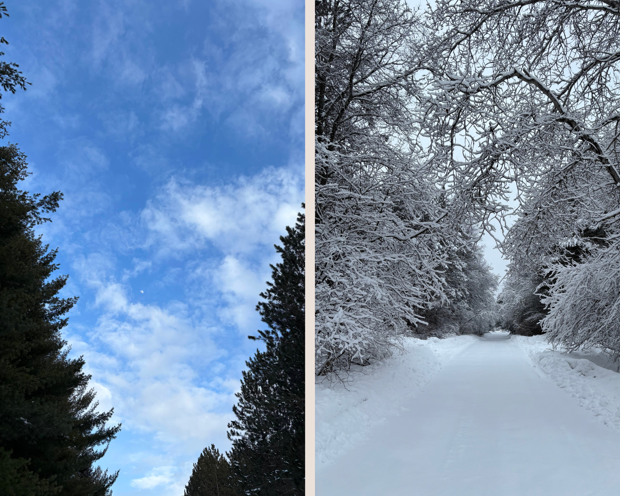 It was a tough pill to swallow a few days later when the snow returned heavily. But I will say a fresh coating on all the trees is beautiful and so I’m inclined to look on the bright side. Those sunny days recharged my batteries enough that I can stay optimistic. Spring is on the way!