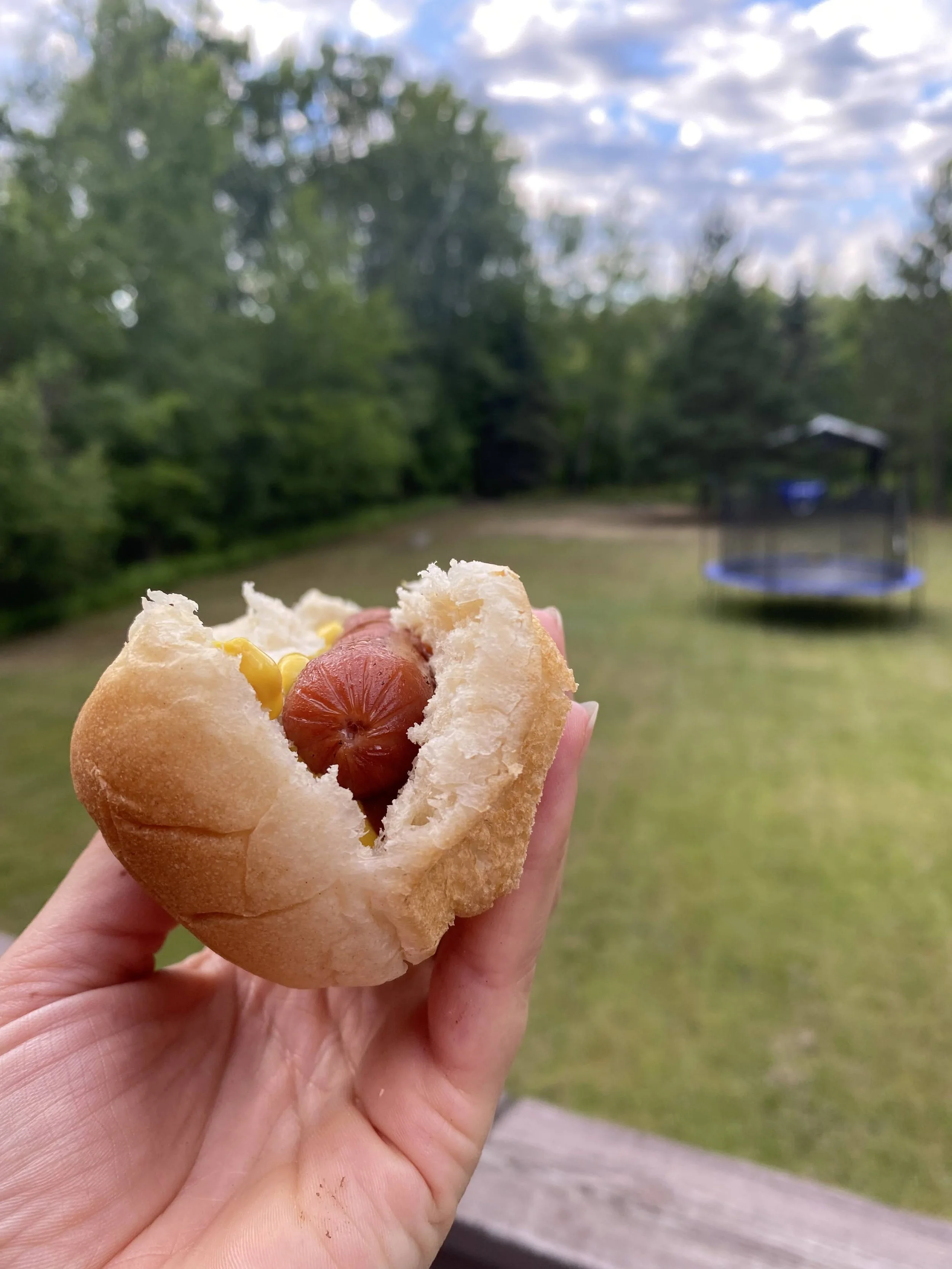 We eat burgers and dogs and someone brought a strawberry rhubarb pie, so that baby gets smashed too. I pull out a big ol’ bag of glow sticks and start passing them out to the kiddos. As it’s getting dark, they become bobbing little glow stick figures, running around the yard. I sneak into the kitchen for a quick 10 minute clean up (future me will be so grateful!) and shove a couple of Modelos and sparklers in a backpack to take down to the fire. The grown-ups are standing around the big bonfire and we hang out there until 11:30 or so. People trickle out along the way and at the end, it’s just a handful of us (including the pregnant niece, bless her. A trooper). We let the fire die down, spread out the ashes and head up to bed.
