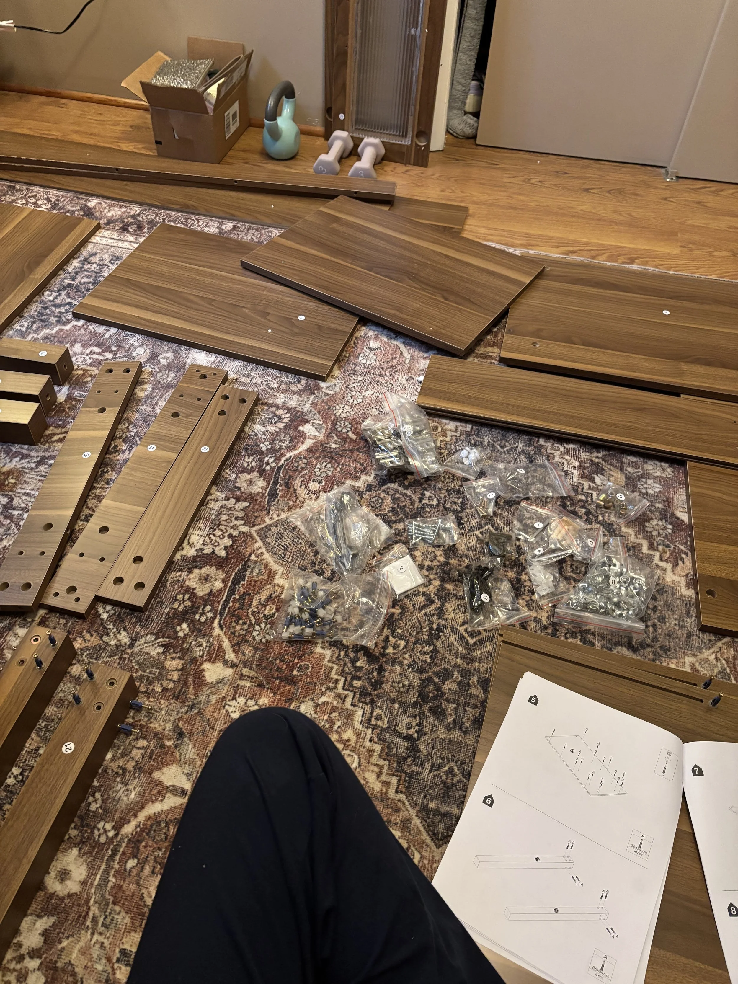 I built a desk by myself in preparation to work from home more fully. Took me the entire GD night but I did it!